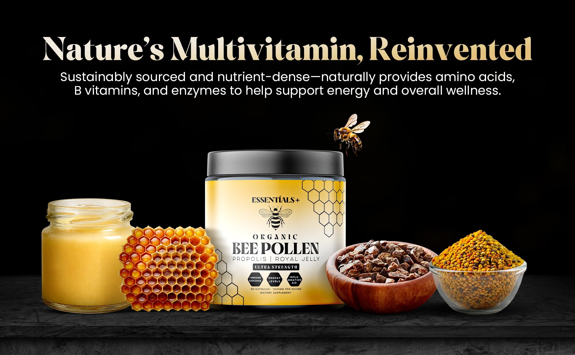 Reach your peak health with BEE POLLEN Capsules with Propolis & Royal Jelly! 🌿 Nature’s ultimate vitality booster. Fight fatigue, sharpen your focus, and fuel your body with essential nutrients that support energy, immunity, and overall wellness.