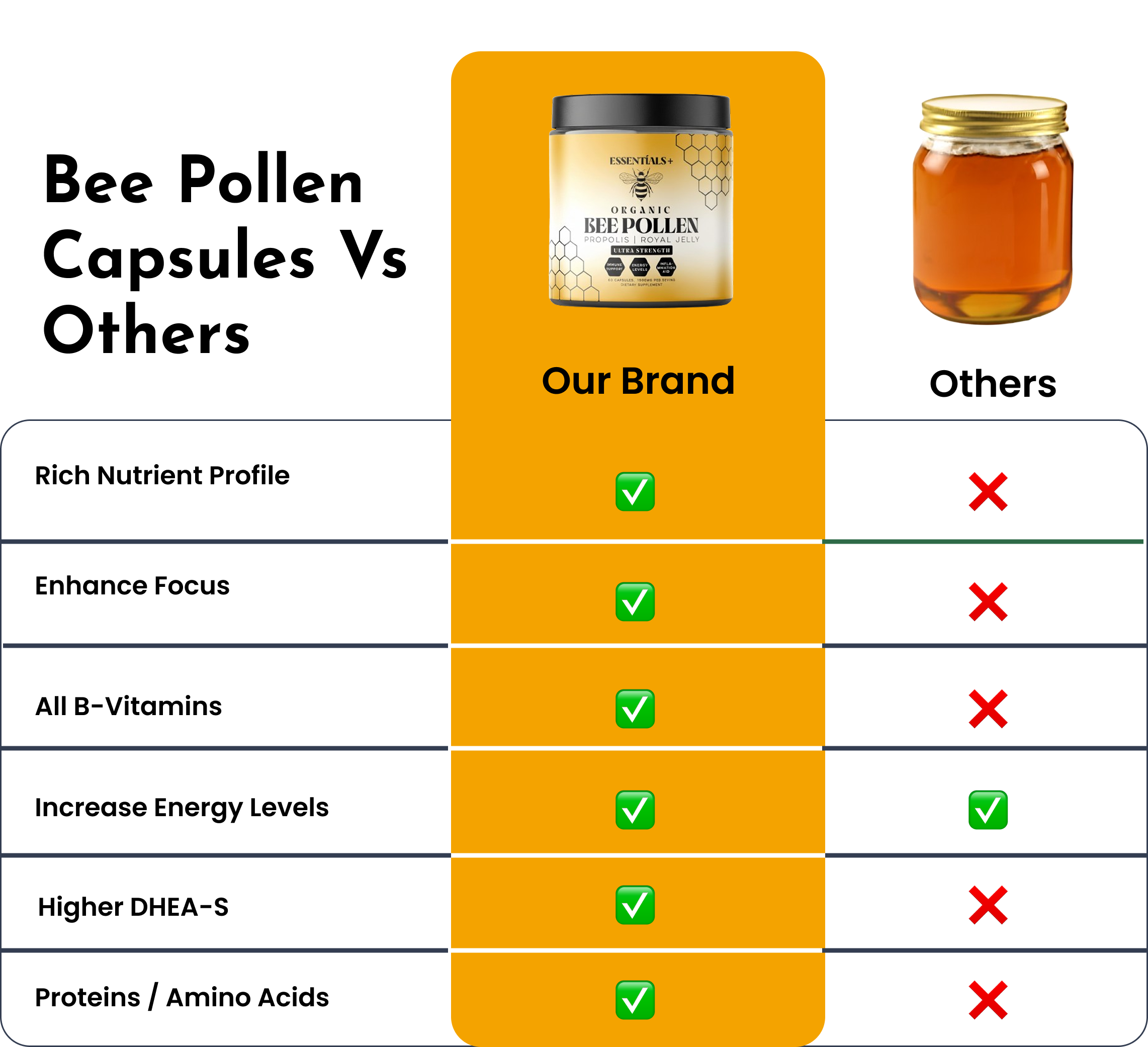 Unlike synthetic supplements, Bee Pollen is pure and organic. Combined with Propolis and Royal Jelly, it helps boost energy, immunity, and hormone balance—a natural way to support inner strength and wellness every day.